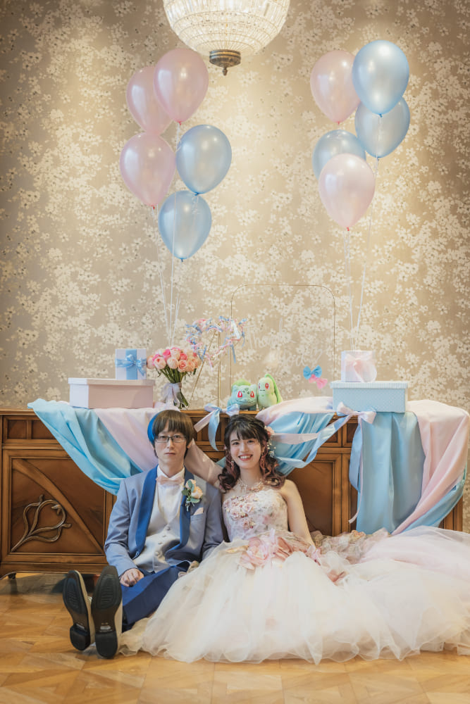それぞれが好きな色の「ブルー&ピンク」をテーマにしたウェディングパーティー。