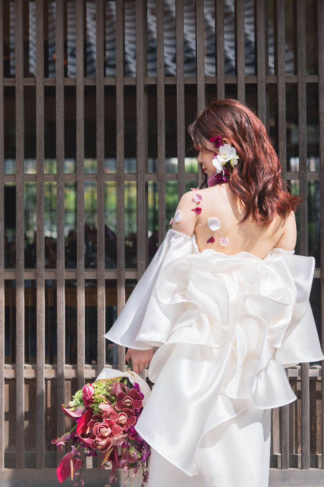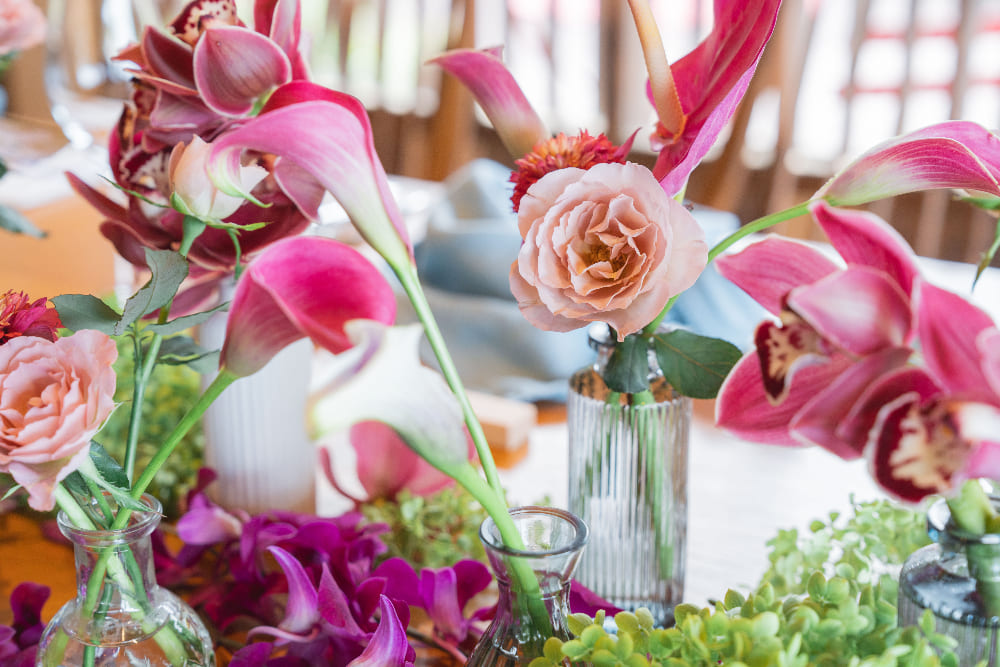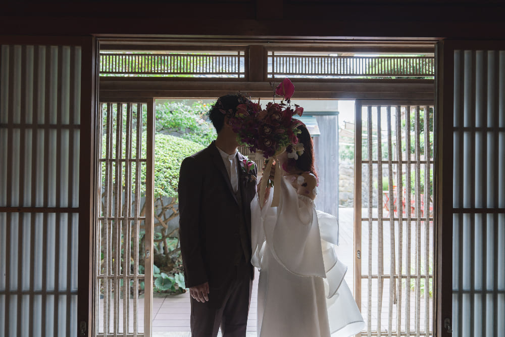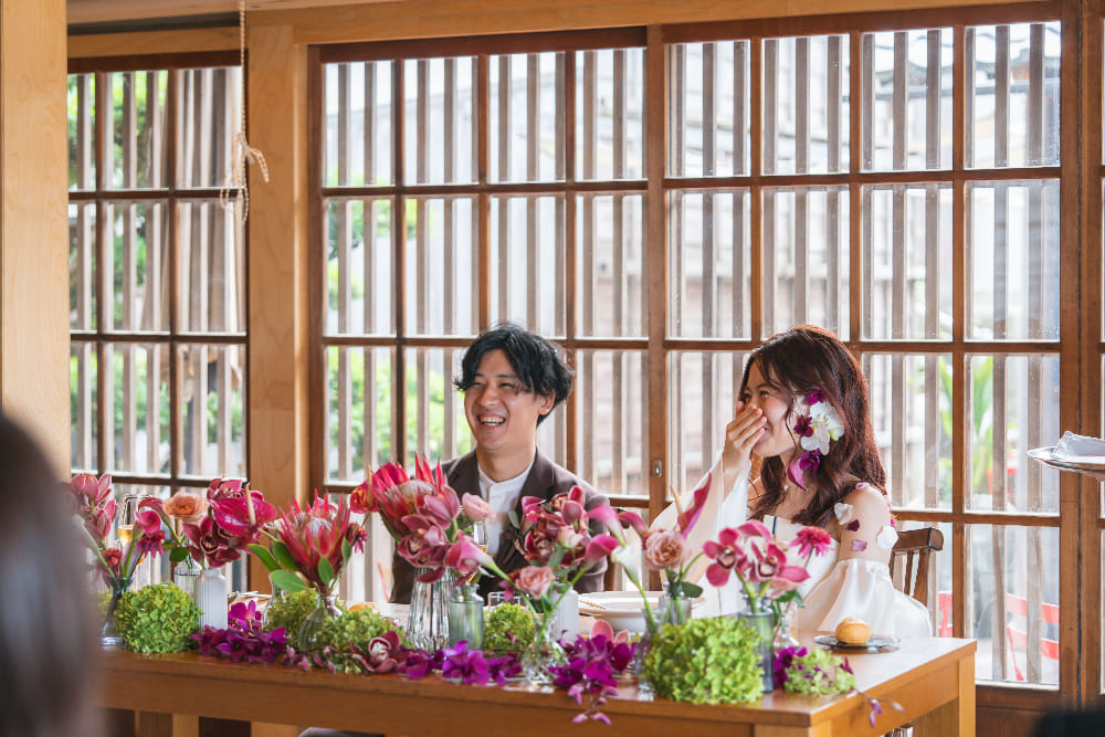 和風の佇まいのレストランに、こだわりのお花たちが溢れ、おふたりらしい結婚式になりました。